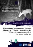 Bien qu’il s’agisse d’un domaine d’étude en pleine expansion, les mammifères terrestres nocturnes demeurent à ce jour parmi les taxons les moins étudiés. Cette étude avait pour objectif d’élaborer et d’expérimenter un protocole in-situ afin de proposer des perspectives méthodologiques permettant d’étudier la lumière en tant que perturbation éventuelle aux déplacements des mammifères terrestres nocturnes.